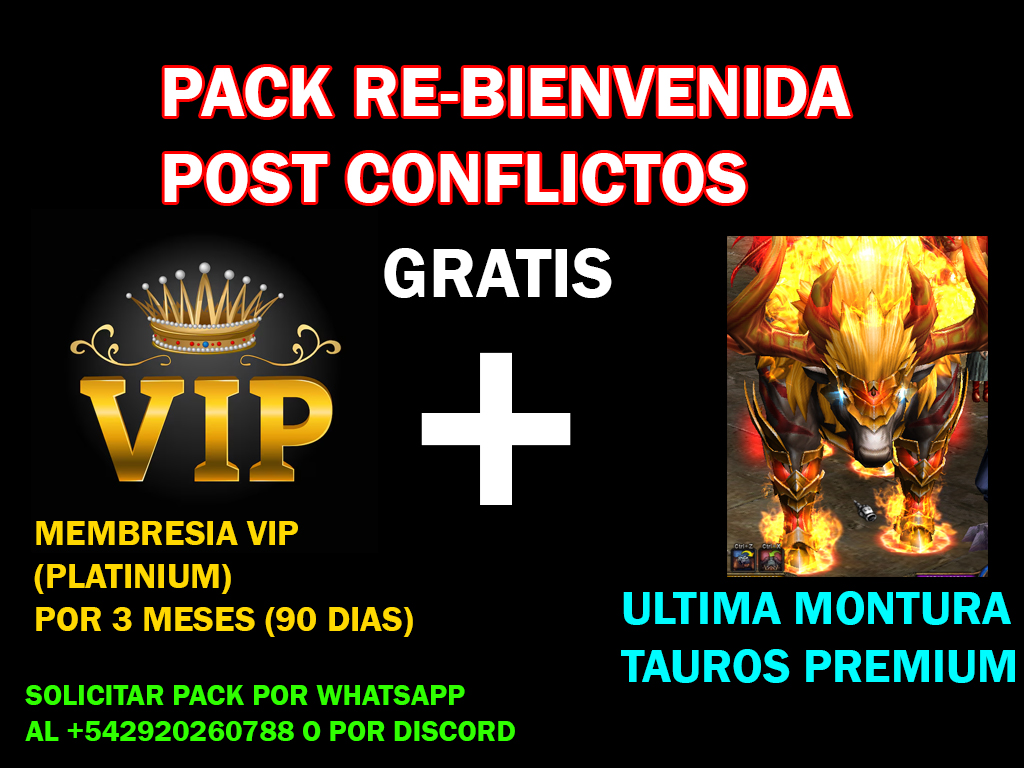 PACK MIGRACIONES Y BIENVENIDA: Si nos escribes por whatsapp o discord te regalamos 3 MESES VIP PLATINUM GRATIS (Por favor enviar el mensaje "Hola, quiero el regalo de RE-BIENVENIDA mi cuenta es NOMBREDECUENTA, maximo 2 cuentas VIP por persona) (COLOCAR CUENTA EN NOMBREDECUENTA)